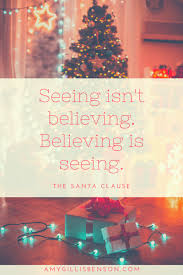 I was watching The Santa Clause staring Tim Allen the other day and one of Santas elves said to Santa Tim Allen Seeing isnt believing believing is seeing and I thought what a great way to look at things. Its time you start listening to Him and believing in Him even though you cant see Him. Shop Seeing isnt believing.