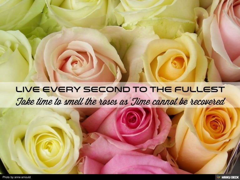 Anybody knows which kind of roses she planted and uses to cook. Take time to smell the roses Dont rush through life. Take time to read the Bible. Yes time to smell the roses to learn to slow your pace to find out why the Lord has blessed you so to realize the beauty of living on Gods earth Greta Zwaan Time Belongs To God Gods Timing. By harry nilsson ascap and richard starkey mbe. Stop and take the time to smell the roses Stop and take the time to fill your noses Stop as you stroll through life pitter patter pitter patter Stop and take the time to talk it over with your wife. Whether you think of stopping to smell the roses as a metaphor or an actual act of admiring roses the benefit is the same.