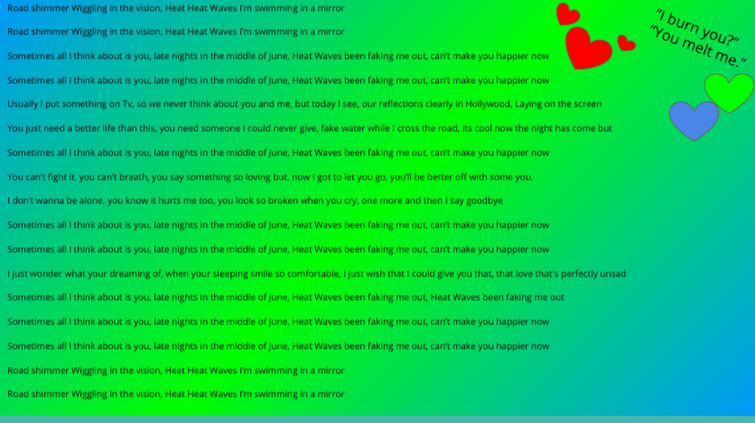 Heat waves been fakin me out. Usually I put somethin on TV. Cant Make You Happier Now Lagu Heat Waves telah dirilis Glass Animals 1 tahun lalu di kanal Youtubenya.