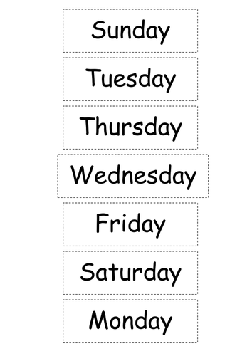 It is important to make the children realize that although we start school on Monday the first day of the week is technically Sunday. This makes it nice and easy for children to identify and order the days of the week with a practical hands-on task that can help to reinforce and strengthen learning on this important topic especially if youve got a lot of kinetic learners in your classThe resource is easy to download and print with an easy-to-understand design that makes it an ideal classroom reinforcement. USPS reports shipping times of 1.